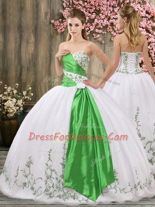 White Sweetheart Lace Up Embroidery and Belt Vestidos de Quinceanera Sleeveless