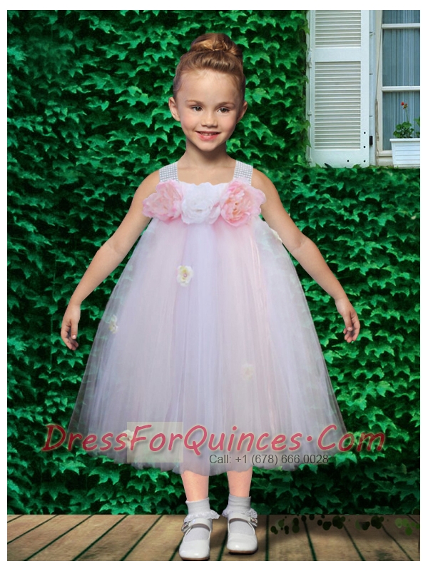 2014 Cute Pink A-Line Tea-length Little Girl Dresses