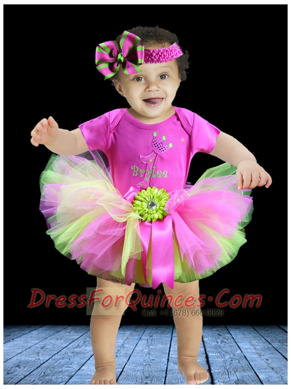 2014 Scoop Hand Made Flowers Mini-length Little Girl Dress in Multi-color