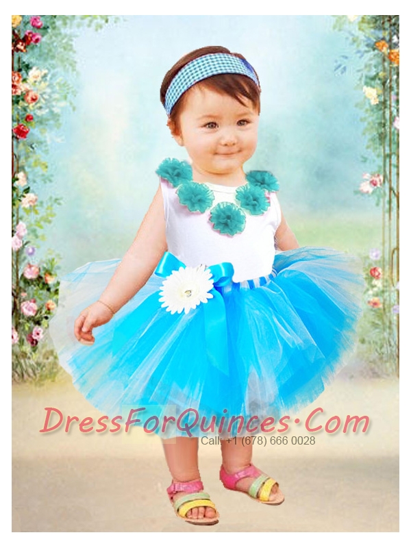 Blue Ball Gown Scoop Knee-length Little Girl Dresses with Bowknot