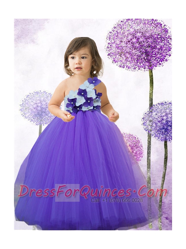 Lavender A-Line Tulle One Shoulder Floor-length Little Girl Dress for 2014