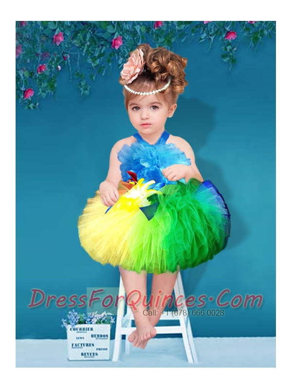 Pretty Multi-color Ball Gown Halter Top Mini-length Little Girl Dresses