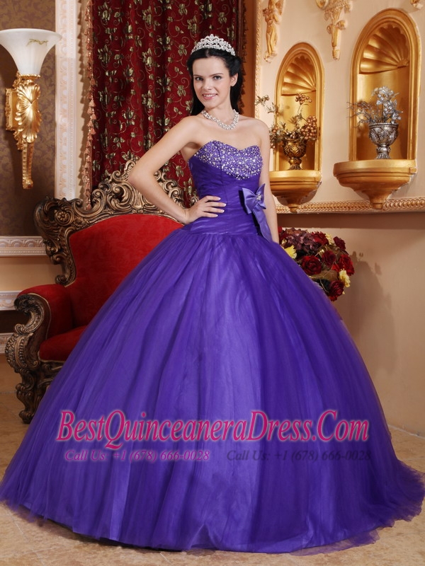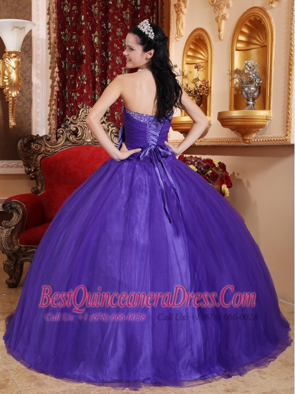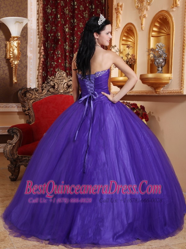 Violet Ball Gown Sweetheart Floor-length Tulle and Tafftea Beading Quinceanera Dress