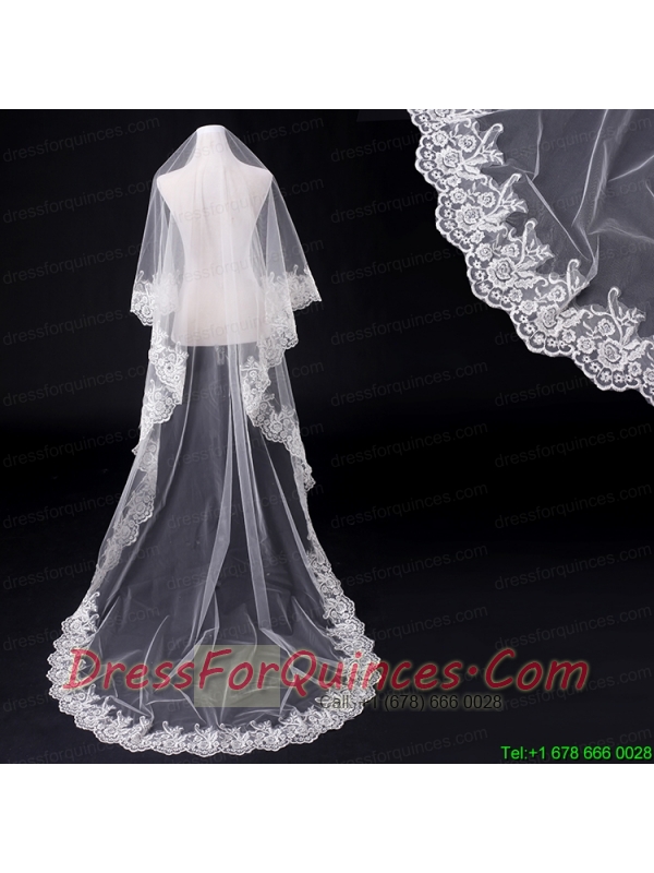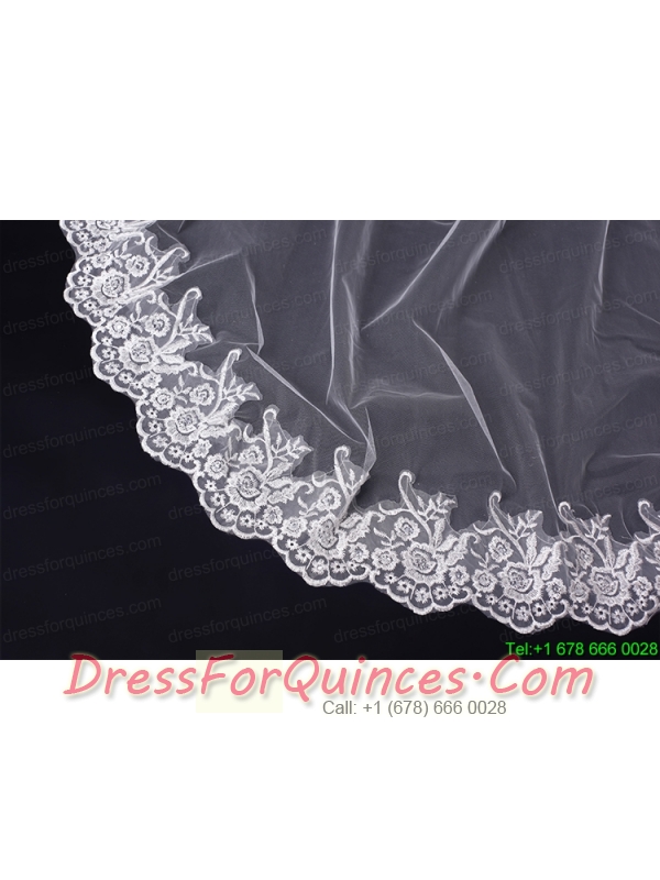 2014 Simple One-Tier Bridal Veils with Lace Appliques Edge