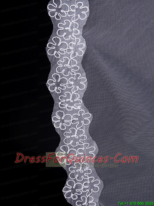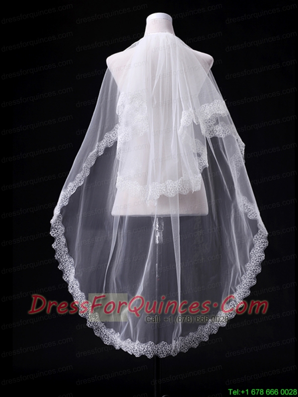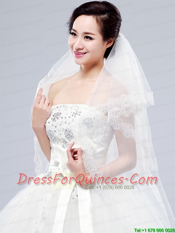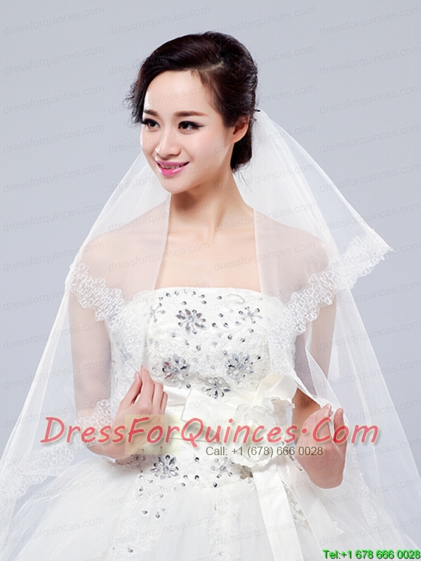 2014 Simple One-Tier Bridal Veils with Lace Appliques Edge