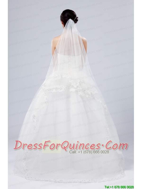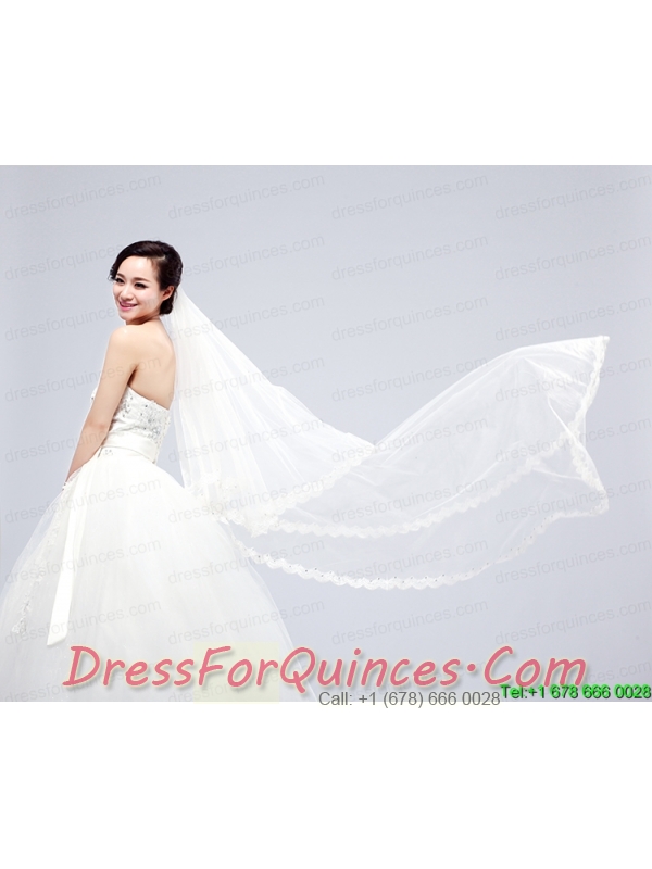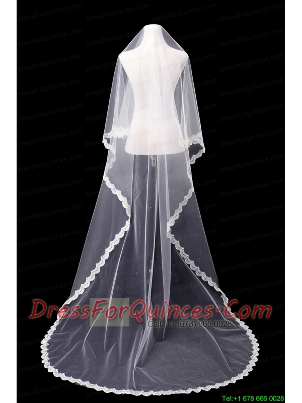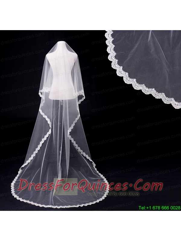Angle Cut Two-Tier Lace Appliques Edge Chapel Bridal Veils