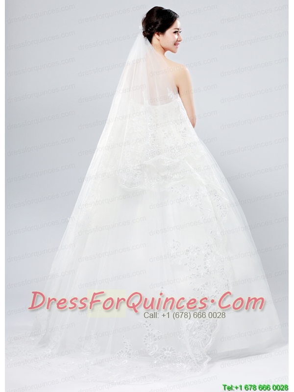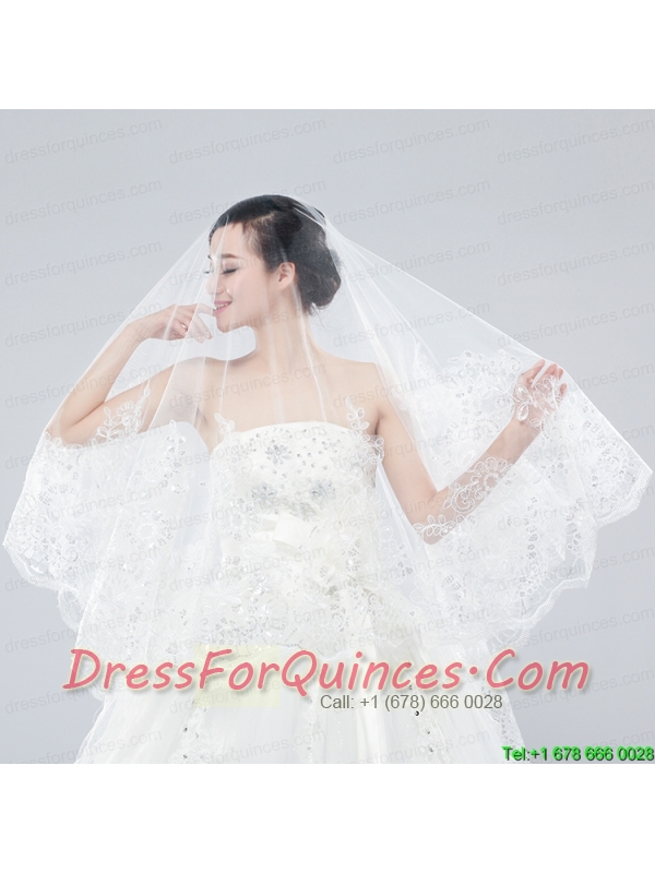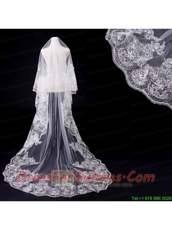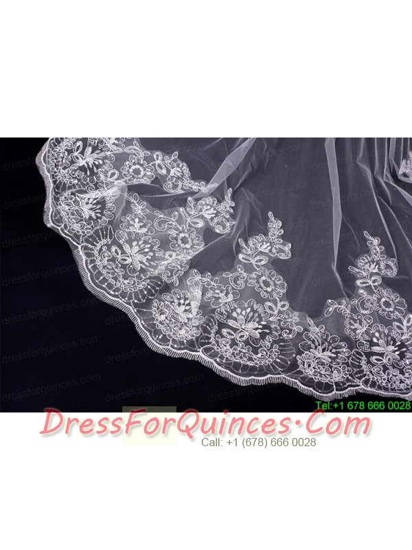 Classic One-Tier Lace Appliques Edge Wedding Veil