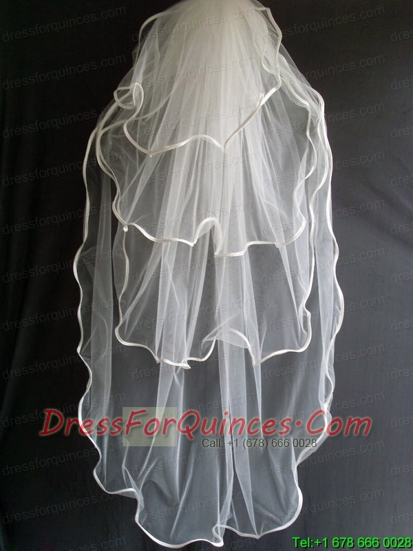 Four Layers Taffeta Ribbon Edge Tulle Wedding Veil