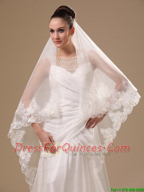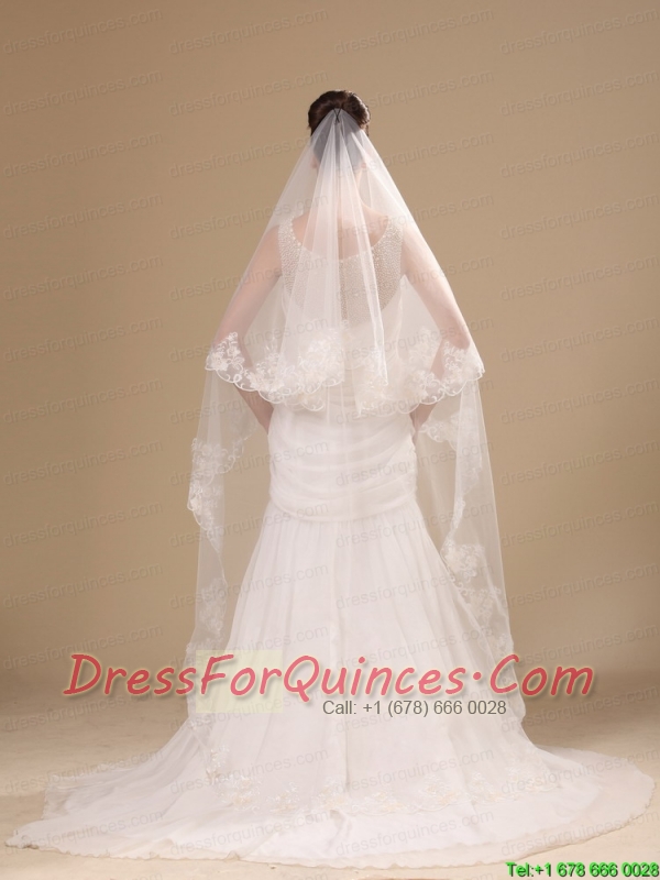 Lace Appliques One-tier Cathedral Tulle Stylish Wedding Veil