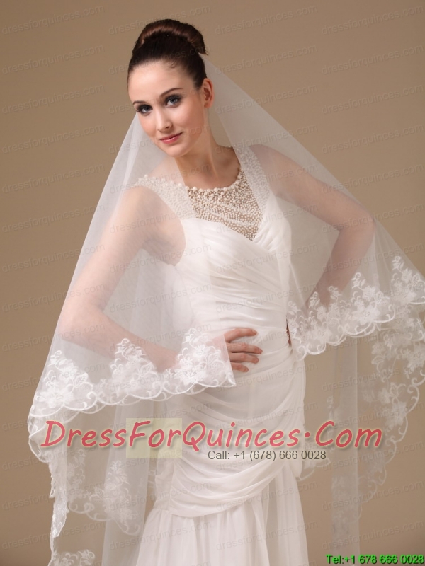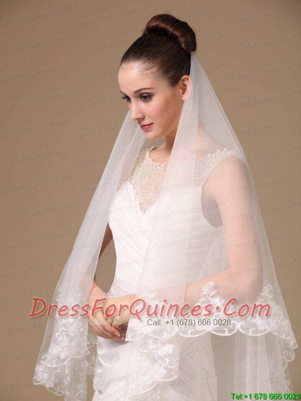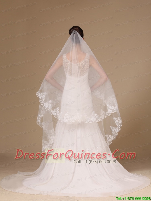 Lace Appliques One-tier Cathedral Tulle Stylish Wedding Veil
