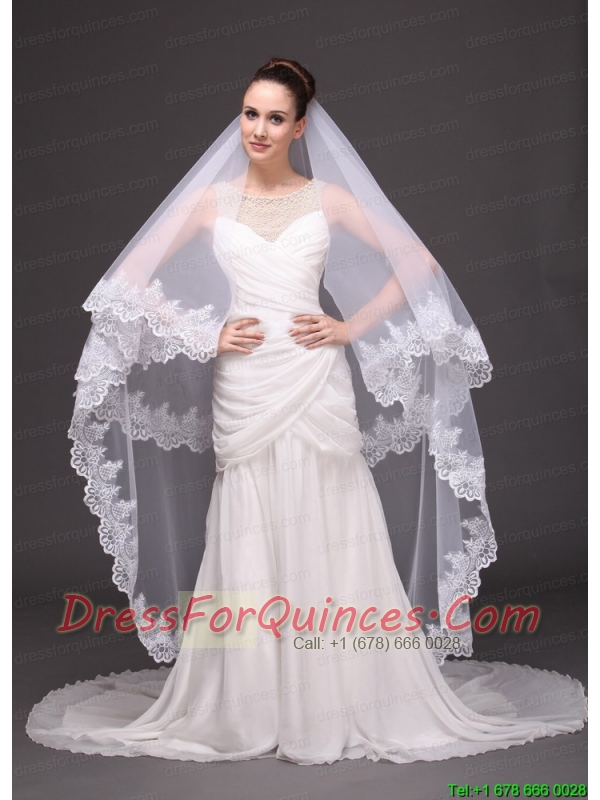 Lace Appliques Two-tier Tulle Drop Veil For Wedding