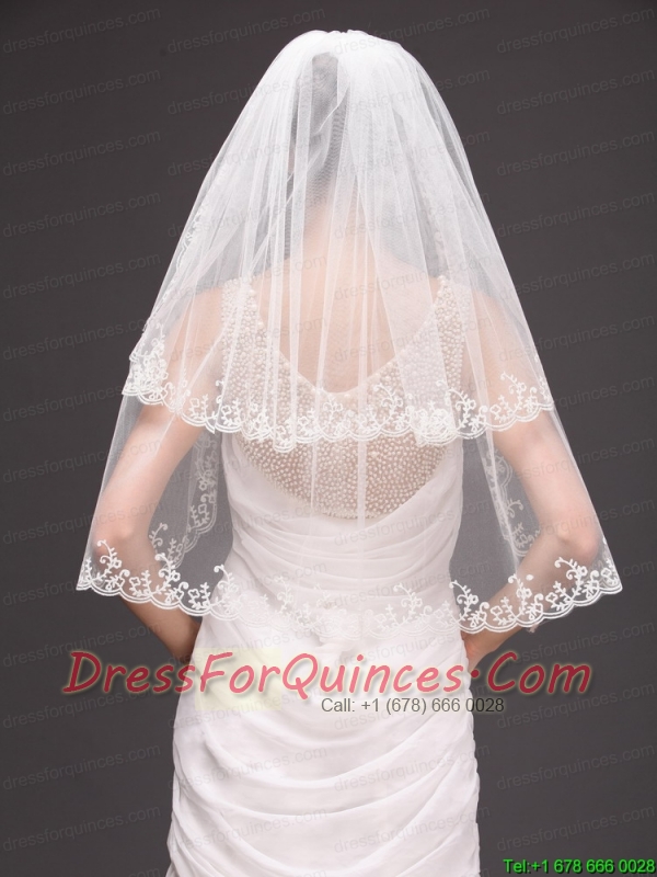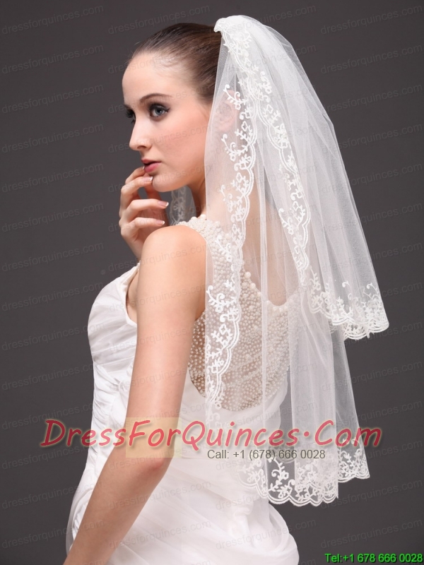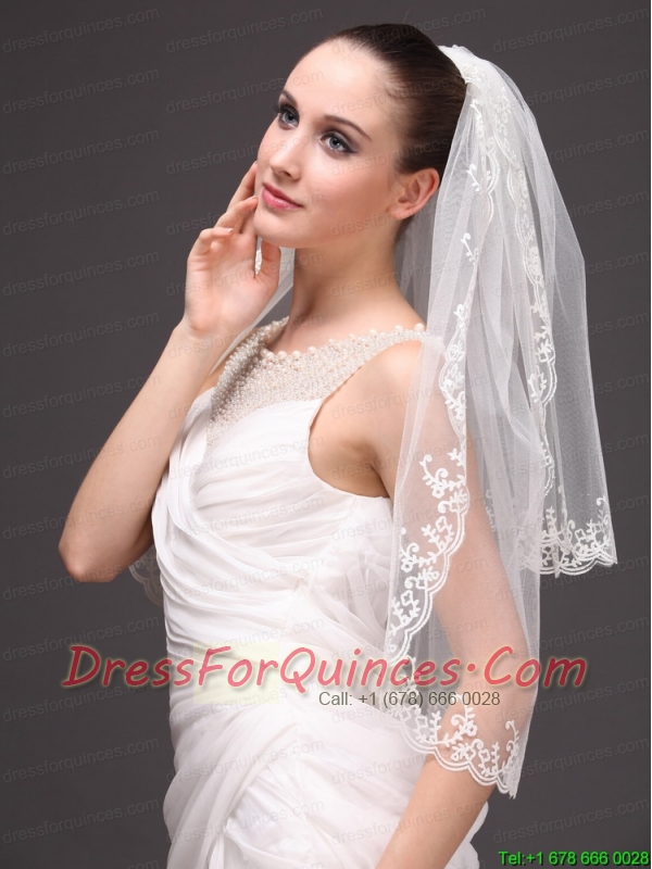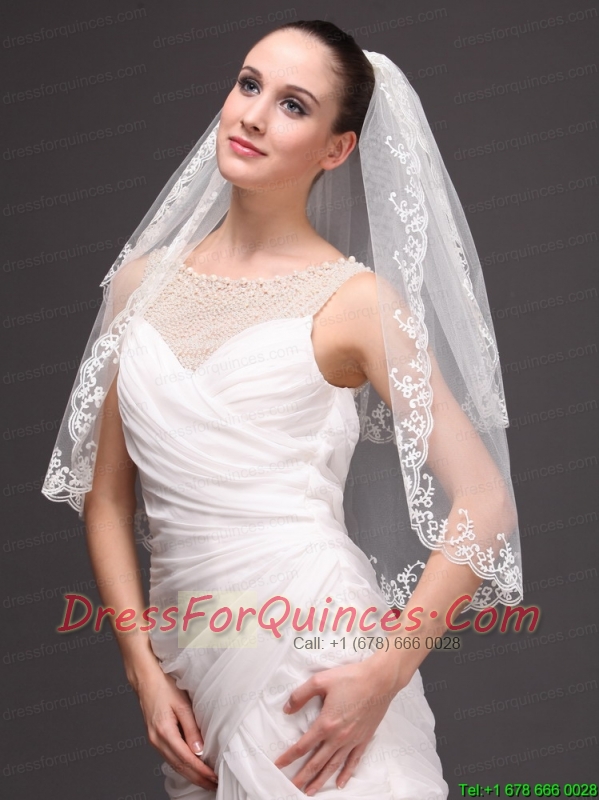 Lace Appliques Two-tier Tulle Graceful Wedding Veil