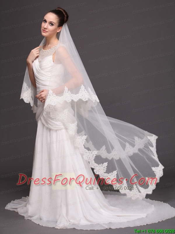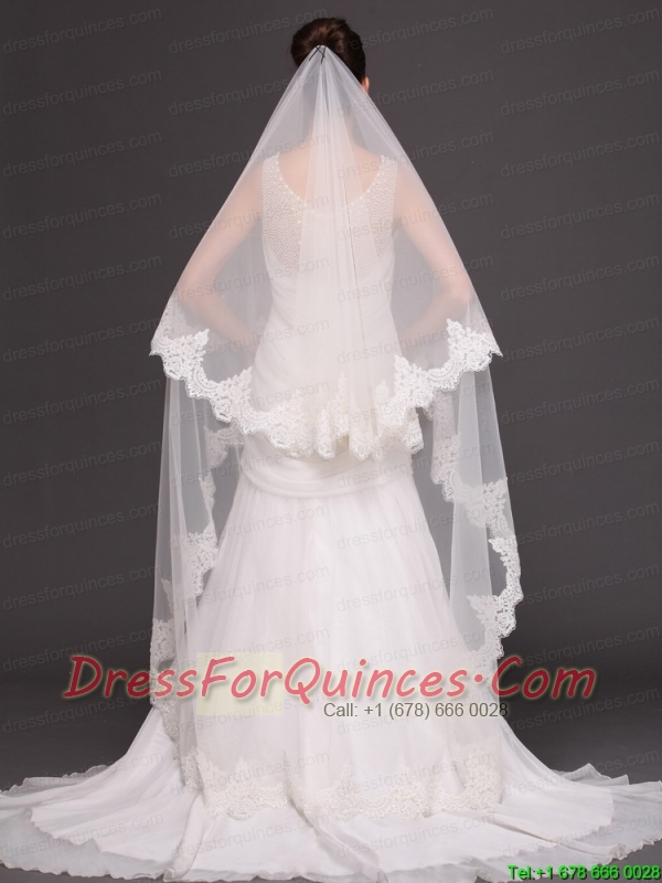 Lace Over Bridal Veil Two-tier For Wedding