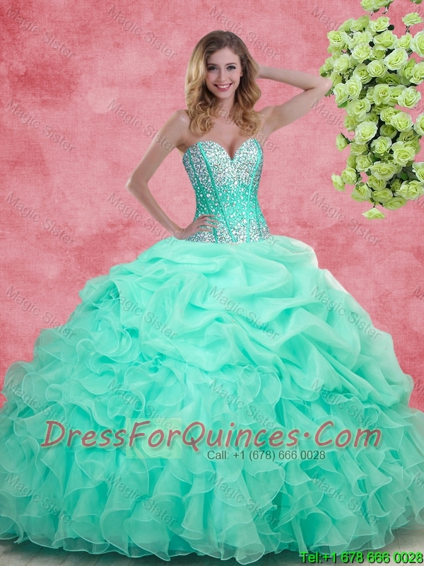 2016 Elegant Summer Apple Green Quinceanera Dresses with Beading and Ruffles