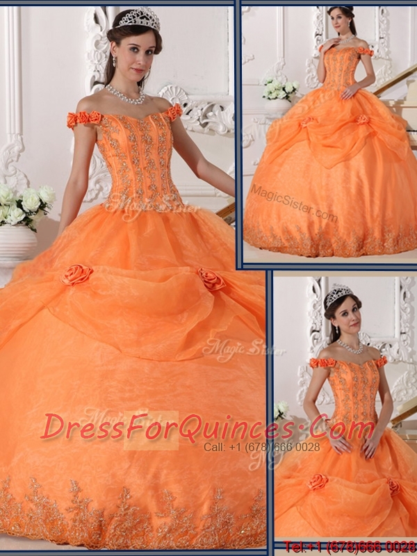 2016 Wholesale Ball Gown Appliques and Hand Made Flowers Sweet 16 Dresses