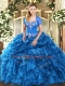 Affordable Ball Gowns Quince Ball Gowns Blue Sweetheart Organza Sleeveless Floor Length Lace Up