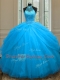Baby Blue Sleeveless Beading Floor Length Quince Ball Gowns