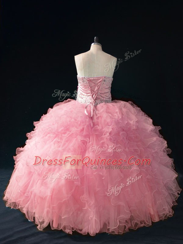 Ball Gowns 15 Quinceanera Dress Pink Sweetheart Tulle Sleeveless Floor Length Lace Up
