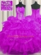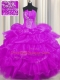 Beautiful Purple Lace Up Strapless Beading and Ruffled Layers and Pick Ups Vestidos de Quinceanera Organza Sleeveless