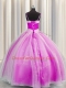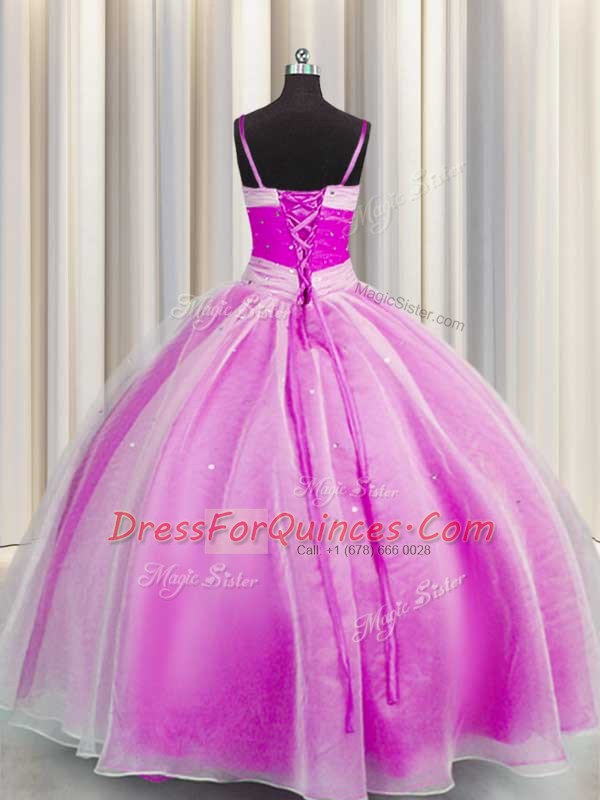 Best Selling Spaghetti Straps Beading and Sequins and Ruching Sweet 16 Dresses Fuchsia Lace Up Sleeveless Floor Length