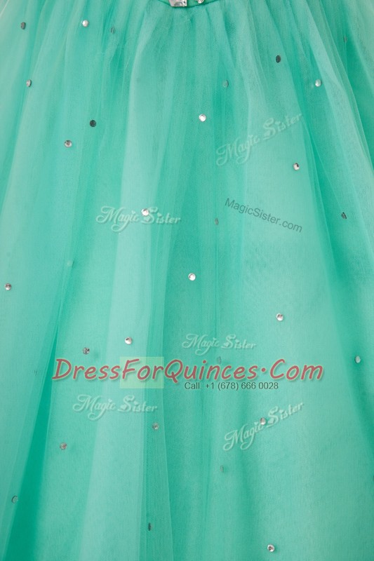 Best Turquoise Sleeveless Floor Length Beading and Ruching Lace Up Sweet 16 Quinceanera Dress