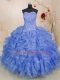 Blue Ball Gowns Sweetheart Sleeveless Organza Floor Length Lace Up Beading and Ruffles Sweet 16 Dresses