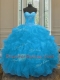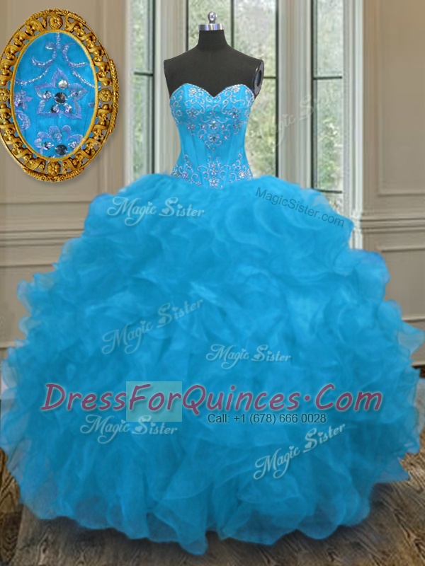 Blue Sweetheart Lace Up Beading and Ruffles Sweet 16 Quinceanera Dress Sleeveless