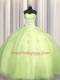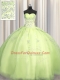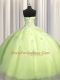 Customized Big Puffy Yellow Green Sleeveless Beading and Appliques Floor Length Quinceanera Gown