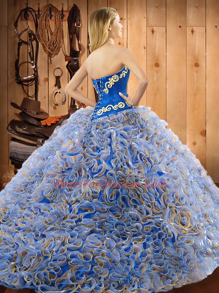 Cute Multi-color Lace Up Ball Gown Prom Dress Embroidery Sleeveless With Train Sweep Train