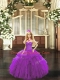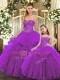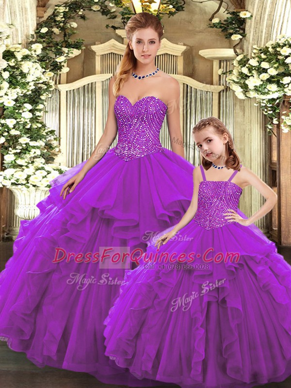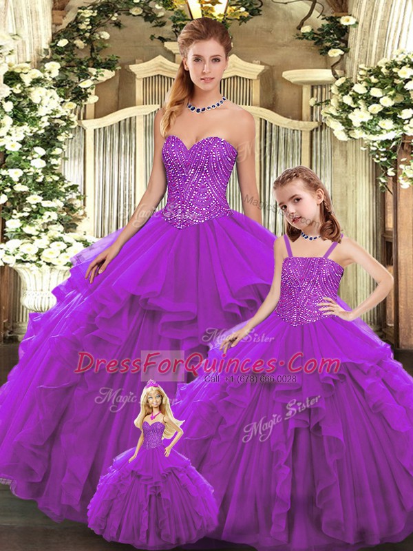 Eggplant Purple Lace Up Quinceanera Gowns Beading and Ruffles Sleeveless Floor Length