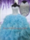 Elegant Sequins Baby Blue Sleeveless Organza Lace Up 15th Birthday Dress for Military Ball and Sweet 16 and Quinceanera