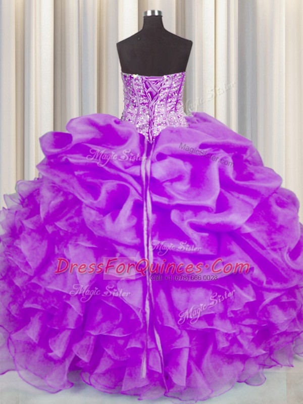 Exquisite Purple Vestidos de Quinceanera Military Ball and Sweet 16 and Quinceanera and For with Beading and Ruffles and Pick Ups Sweetheart Sleeveless Lace Up