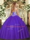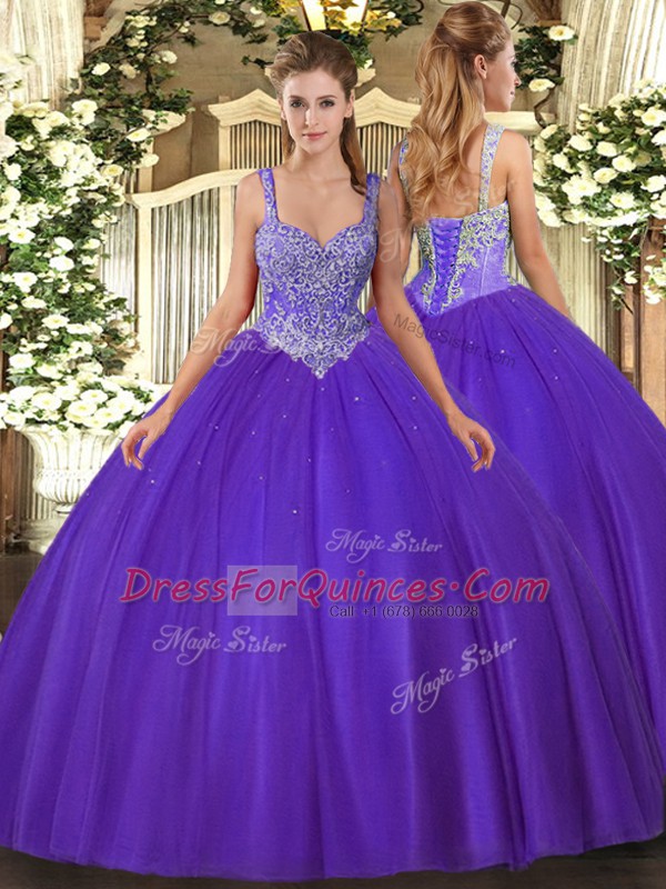 Fabulous Purple Tulle Lace Up 15 Quinceanera Dress Sleeveless Floor Length Beading
