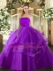 Fine Strapless Sleeveless 15th Birthday Dress Floor Length Ruffled Layers Eggplant Purple Tulle