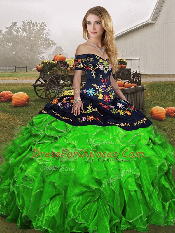 Floor Length Ball Gowns Sleeveless Green Vestidos de Quinceanera Lace Up