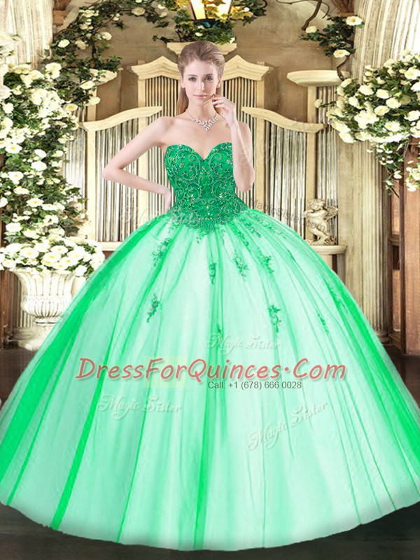 Floor Length Ball Gowns Sleeveless Turquoise Vestidos de Quinceanera Lace Up