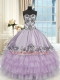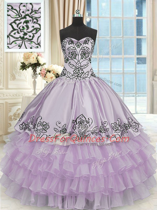 Floor Length Lace Up Quinceanera Dress Lavender for Military Ball and Sweet 16 and Quinceanera with Beading and Embroidery and Ruffled Layers