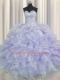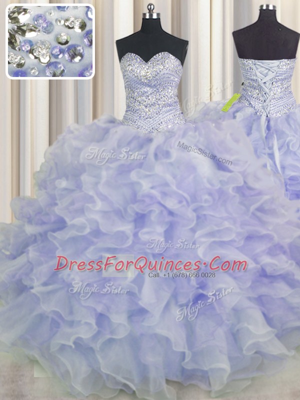 Floor Length Purple 15th Birthday Dress Organza Sleeveless Beading and Ruffles