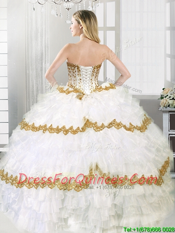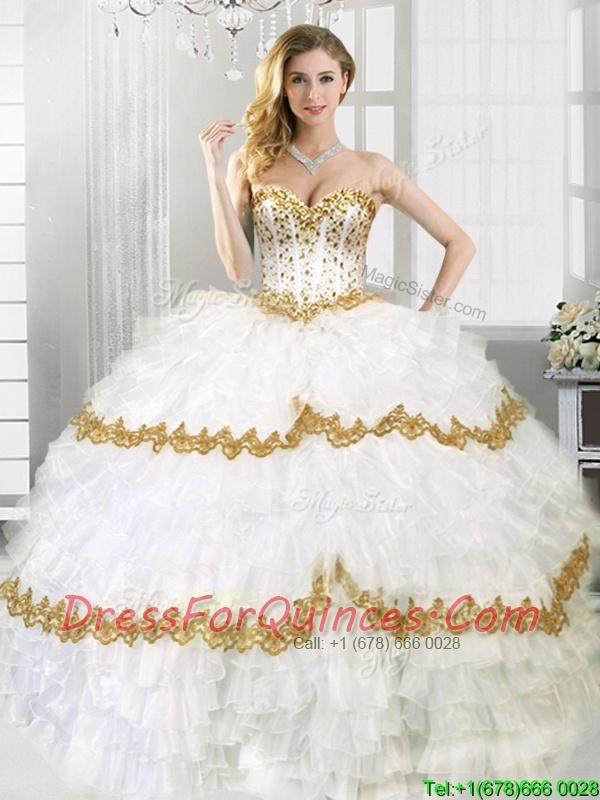 Gorgeous Beaded and Ruffled Layers Sweet 16 Dress in White