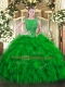 Green Sleeveless Organza Zipper 15th Birthday Dress for Military Ball and Sweet 16 and Quinceanera