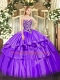 Inexpensive Purple Sweetheart Lace Up Beading and Ruffled Layers 15 Quinceanera Dress Sleeveless