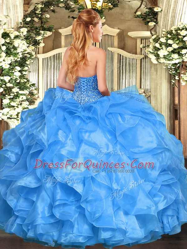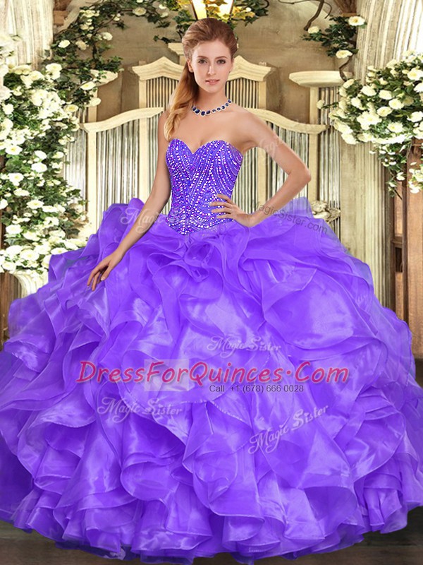 Nice Lavender Lace Up Sweetheart Beading and Ruffles 15 Quinceanera Dress Organza Sleeveless