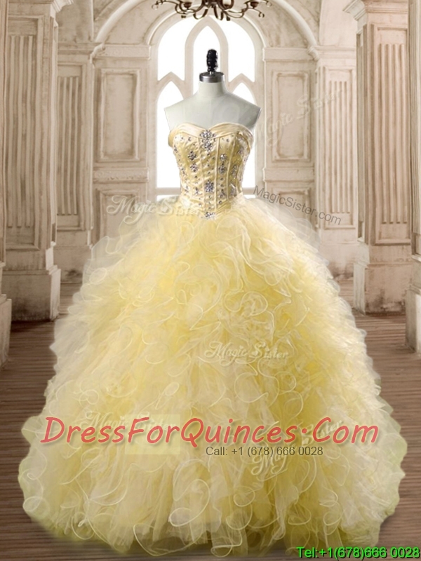 Perfect Beaded and Ruffled Tulle Quinceanera Dress in Yellow