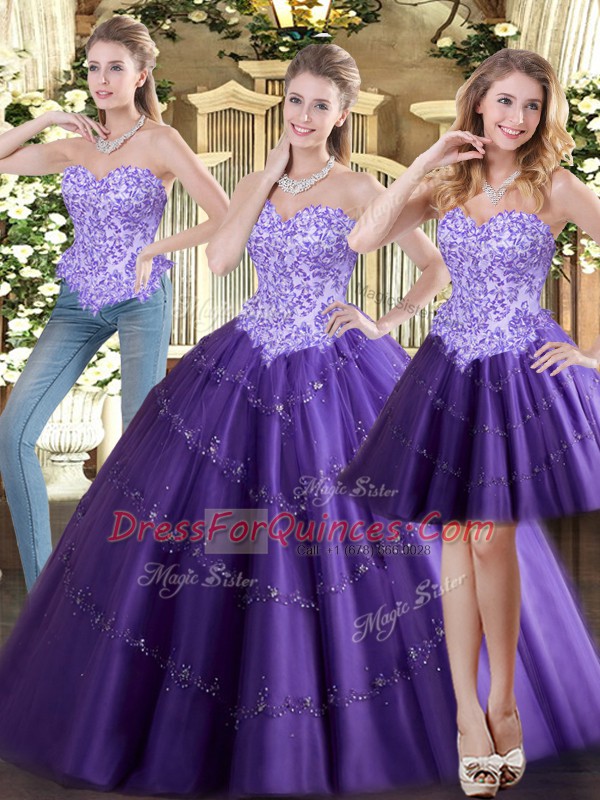 Pretty Tulle Sweetheart Sleeveless Lace Up Beading Ball Gown Prom Dress in Purple