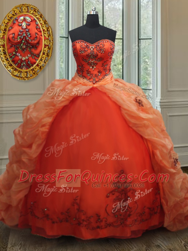 Sleeveless Brush Train Beading and Embroidery and Pick Ups Lace Up Sweet 16 Quinceanera Dress