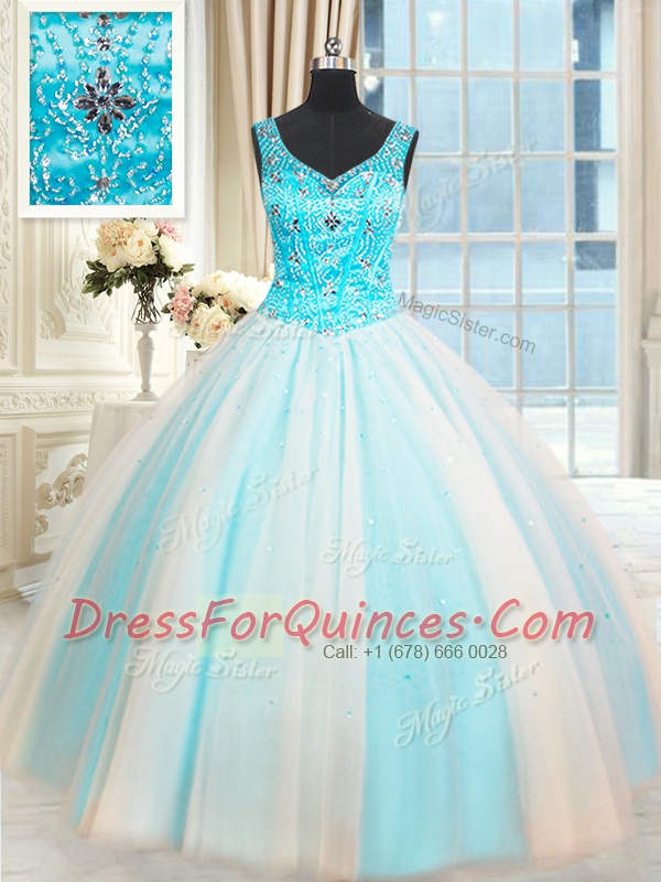 Sleeveless Tulle Ball Gown Prom Dress Beading Lace Up