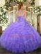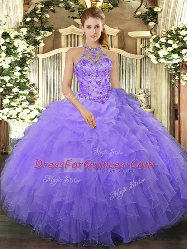 Stunning Halter Top Sleeveless Organza 15th Birthday Dress Beading and Ruffles Lace Up