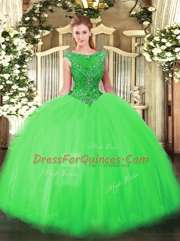Stylish Green Zipper Scoop Beading Sweet 16 Quinceanera Dress Tulle Sleeveless