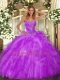 Sweetheart Sleeveless Ball Gown Prom Dress Floor Length Beading and Ruffles Eggplant Purple Organza